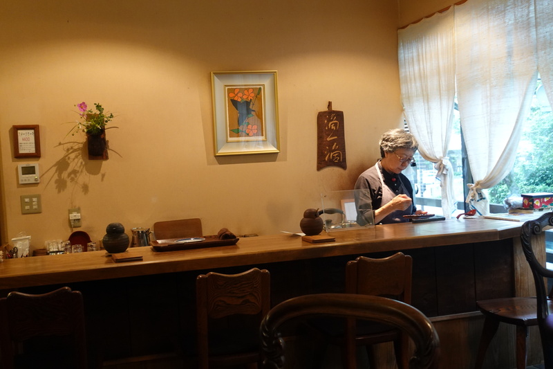 注文をすると、その豆を銅製の筒から取り出し、必要量を計る。ハンドピックで傷ついた豆を選ぶ。普通はそれを捨てるのだが、ここでは数粒の欠品をミルで挽く。これは、直前に挽いた豆と種類が違うと、前の豆の香りを飛ばし、これから抽出する豆の香りを纒わすわけだ。見ているだけだと儀式のように思うが、それにはきちんとした理由がある。