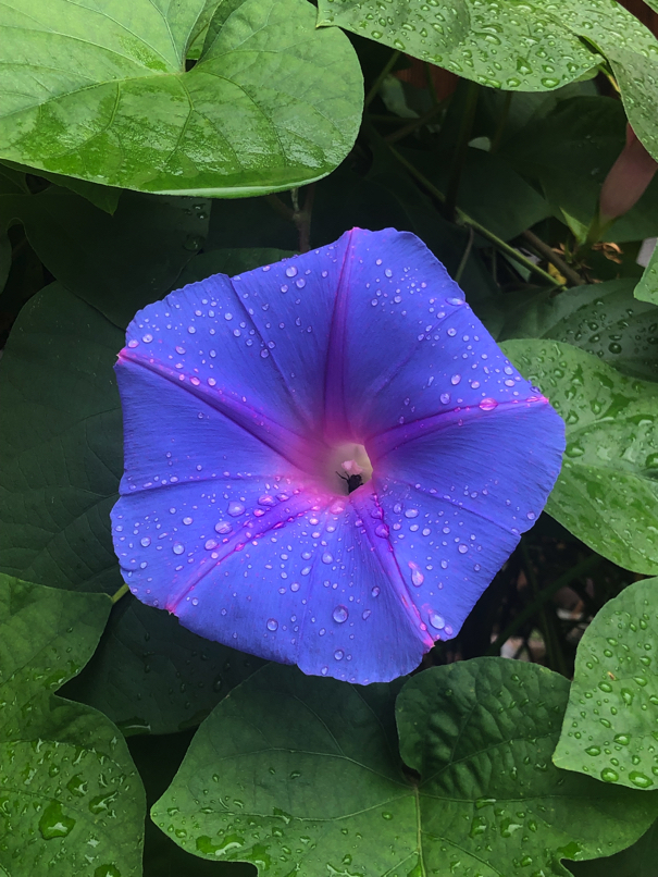 自宅周辺の風景でも、花の変化がじつによくわかる。朝顔の色合いの美しさ。また雨が降り、その水滴がついた花の可憐なことに感動を覚える。
