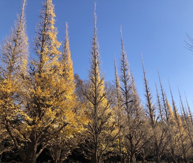 今日のイチマイは青空と銀杏のコントラスト。整然と並んだえんぴつみたい♪