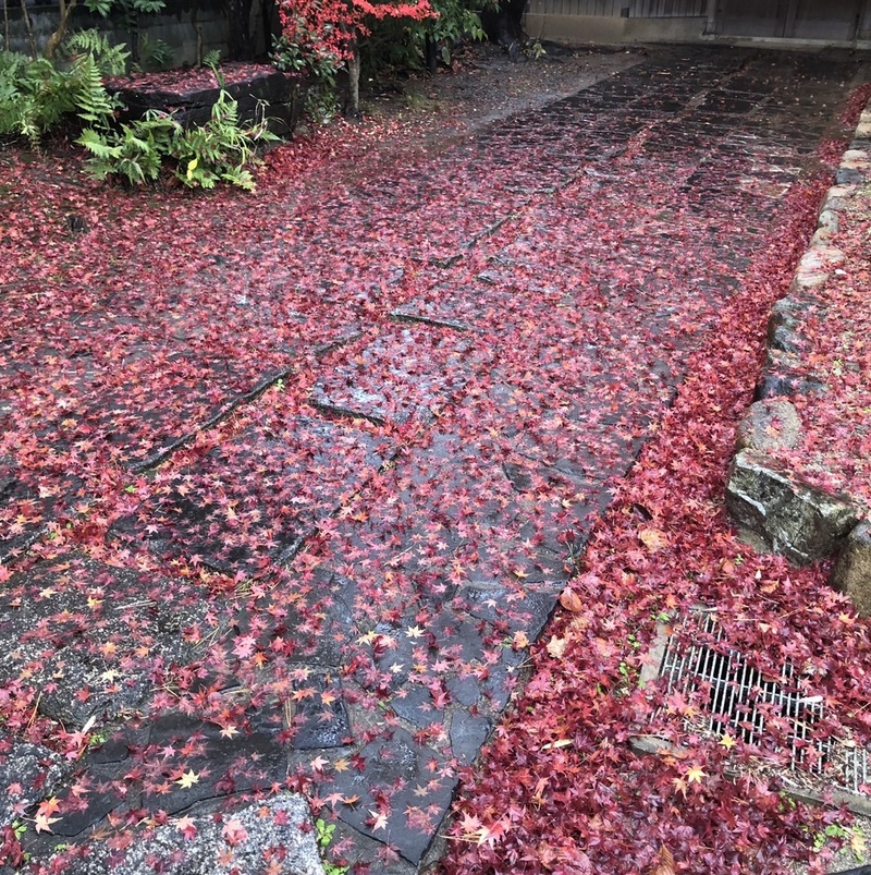 今日のイチマイは雨に濡れた路面に紅葉のアート♪