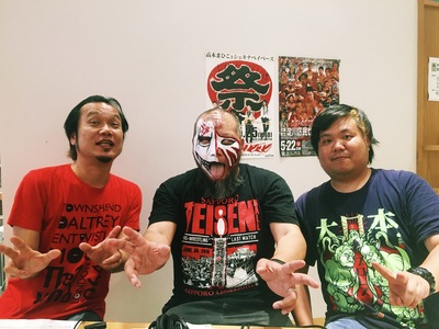 試合前でお忙しいなか、"黒天使"沼澤邪鬼選手、マック竹田レフェリーがお越しくださいました