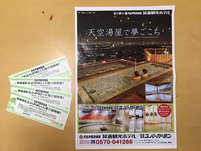 大江戸温泉物語 箕面温泉スパーガーデンの利用券を2組4名の方に