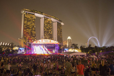 写真のように、マーライオンとマリーナ・ベイ・サンズを