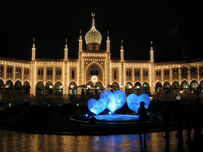 チボリ公園は、夜クリスマスになるとこんな綺麗にライトアップされます!