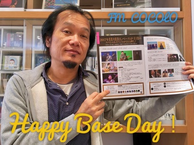 写真はFM COCOLO 1day special Happy Bass Day!の記事が掲載されているBASS MAGAZINEフリーペーパーと一緒に