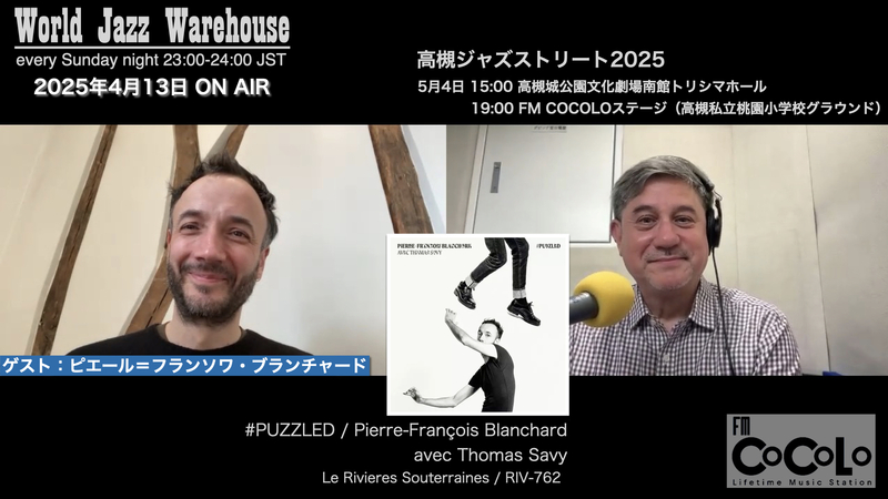 今夜は、その第ニ弾として、フランスから来られるピアノ奏者兼作曲家ピエール=フランソワ・ブランチャードがリモートで登場!ジャズや即興演奏の魅力や今度、共演されるクラリネット奏者トーマス・サヴィーと収録した初リーダーアルバムなどについてお聞きします。