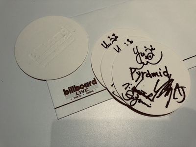 今夜のインタビューゲストでもあるピラミッドお3方のサイン入りビルボードライブ大阪コースターを4名様にプレゼントします。