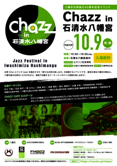 また、10月9日(月・祝)開催の Chazz in 石清水八幡宮に出演するミュージシャンの音源もオンエアします。
