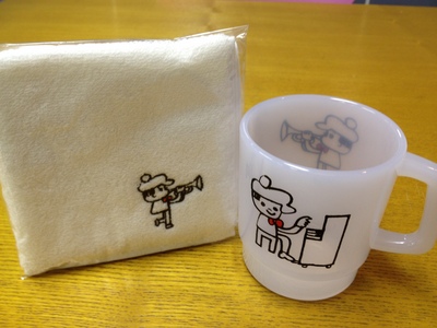 「ジャズの100枚」のロゴが入ったマッグカップとタオルをセットにして2名様へ。