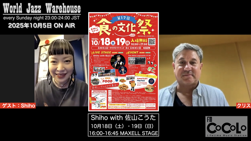 今夜は、人気シンガー Shiho がリモートで登場!彼女には最近の活動や今度ご出演いただく「たかつき食の文化祭」への意気込みをお聞きします。