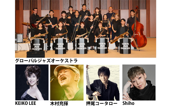 出演はThe Global Jazz Orchestra にゲスト、KEIKO LEE、木村充輝、押尾コータロと Shiho を迎える豪華なステージ。