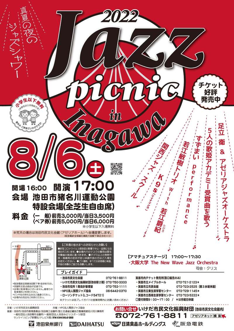 また、チケットプレゼントがあります!関西で開催される唯一の夏野外ジャズフェスティバル「2022 Jazz Picnic in 猪名川」へ3組6名様をご招待!