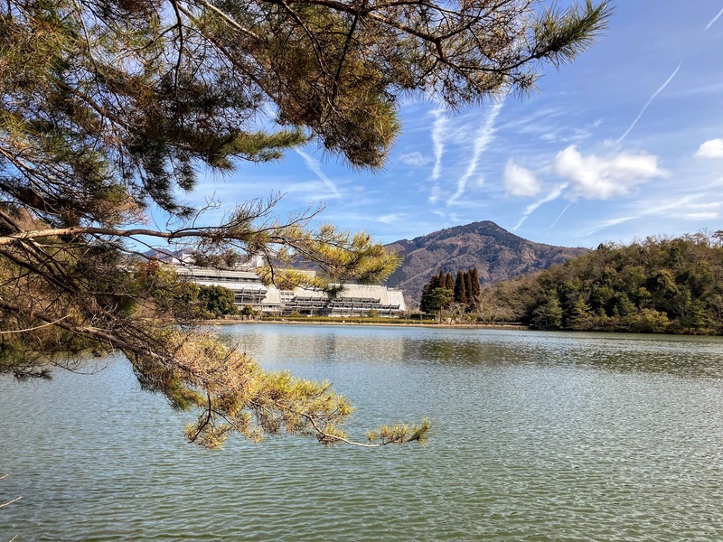 中でも、今回僕が「ここやな」と思ったベストビューのひとつに挙げたいのは、宝が池公園の池越しに、国際会館のどっしりした建物を奥に、そして比叡山をそのさらに奥に据えるこの眺め。