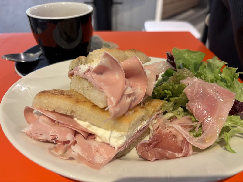 Eataly(イータリー)でした。イタリア産の食材を販売し、その場でもカフェやレストランで食べられるという総合フードマーケット。そりゃ、なんでもイタリアだわな。全世界に展開しているイータリーですが、僕の普段の行動範囲には店舗がないもので、僕は物珍しくいろいろ物色。パニーノを注文してエスプレッソをダブルで飲み、自宅用にハムも購入… していたら、結局観劇はギリギリ滑り込みセーフでした。あぶねぇ! イータリー、危険。今後、肝に銘じます。