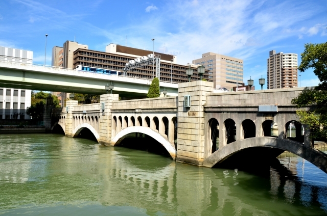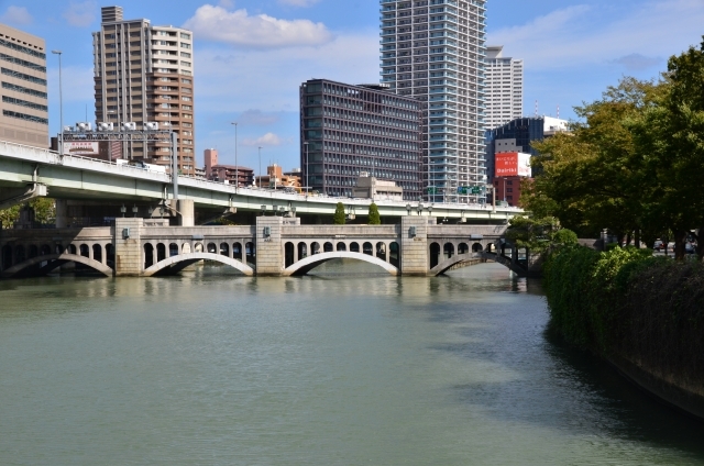 すぐ下流側に架る大江橋、土佐堀川の淀屋橋と同じく、