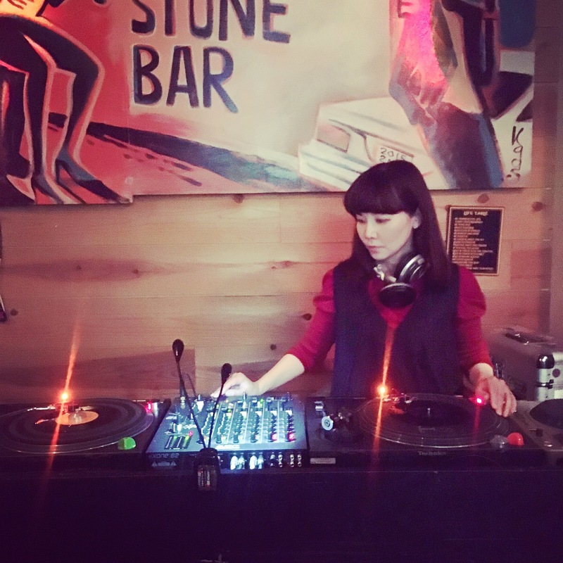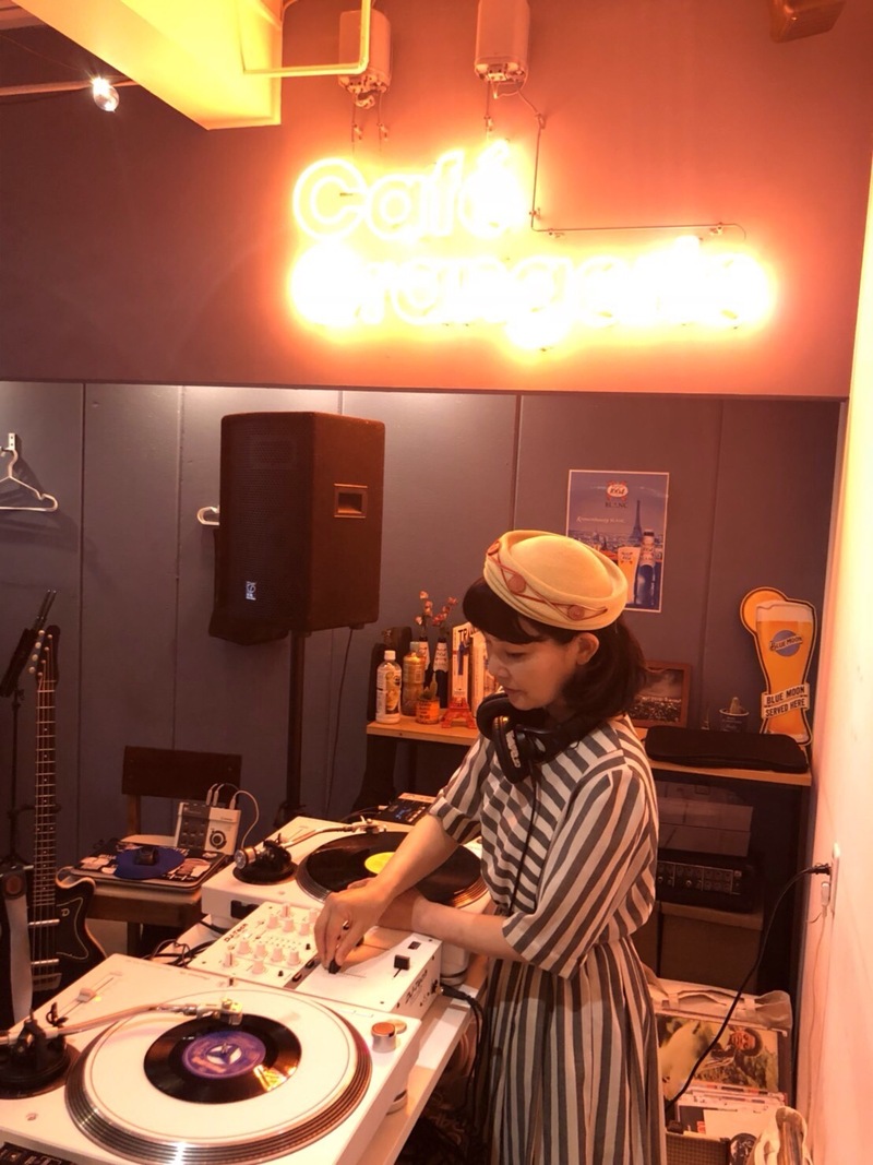 DJをしているときの、おのえまん♪帽子も服もかわいいです!!