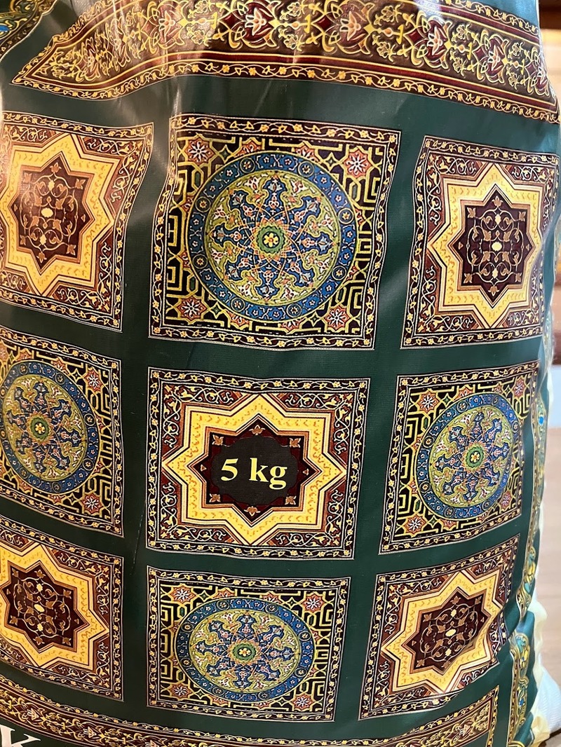 こちらはパキスタンの… なんだと思います? 真ん中に5kgっていう文字が見えますね。この単位と量でピンときます? こないですよね。