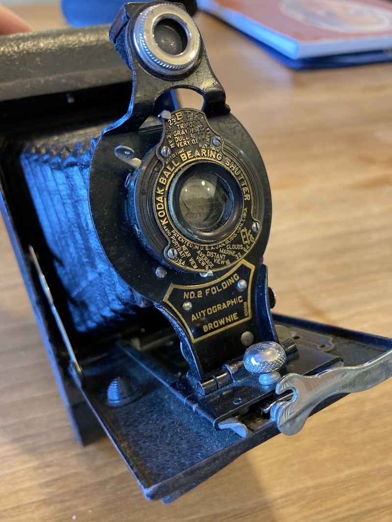 ビデオやら8mmのカメラ、フィルムと、映像関係のハード・ソフトがごちゃごちゃしているエリアから発掘したのが、こちらの古い写真機です。