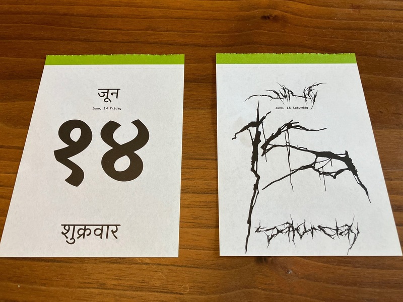 自宅では毎年日めくりカレンダーを使っているんですが、今年は世界のフォントの多様性が味わえるものを壁にかけております。