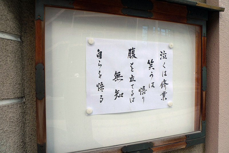 そんなわたしの散歩やジョギングのときのたのしみが、お寺の掲示板のことば。お寺の入り口にそのときどきのことばがはりだされているアレです。「今年こそ、今年こそとて暮れにけり」「人生一生、酒一升、あるかと思えばもう空か」「何ごとも思い通りにならないと思ったときが出発点」。ドキッとして背筋が伸びたり、なるほどとニンマリしたり。多くを語らず人の業を諭す。直球でえぐるお寺、変化球で攻めるお寺、硬いことばのお寺など、いろいろあって飽きることがありません。そういえば10年ほどまえ、どこかのお寺のことばが響いたのでパチリと撮影。今回、番組でご紹介した「へい、太鼓持ちがまいりました!」の帯の惹句の出どころと気づき、その偶然が意味することをアレコレ考える夜でした。