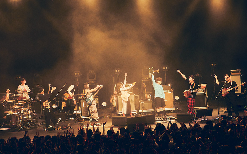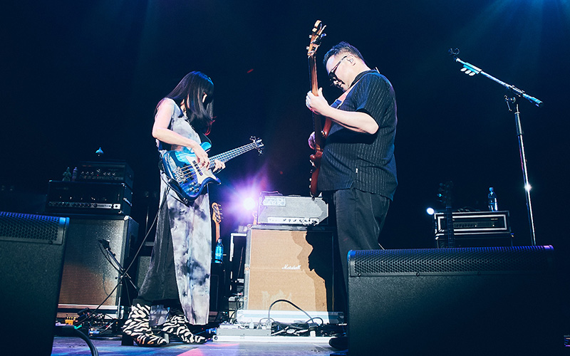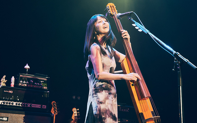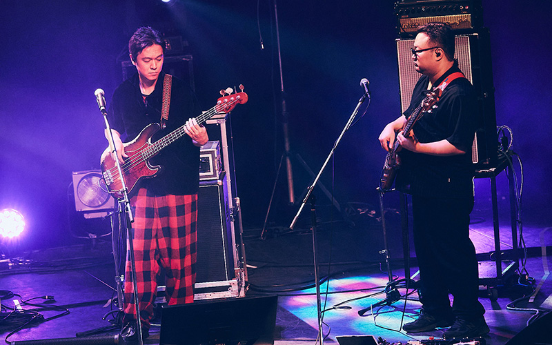 続いて課長が所属するゲスの極み乙女の「猟奇的なキスを私にして」。丸山はベースを置き、マイクを握ってボーカルに専念する。川谷絵音が描いた艶やかなメロディを、ハイトーンで情感豊かに歌い上げるその姿に、ホール全体が息を呑んだ。「こんなにお客さんが集まってくれて……10周年にふさわしい景色ですね。ありがとうございます」と課長があらためて礼を述べ、「これだけのベーシストが一堂に会するなんて滅多にないこと。今日は思う存分、低音を楽しんでください」と丸山が呼びかけると、温かな拍手が広がった。