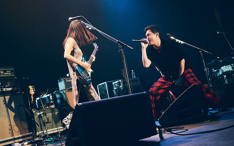 「次の曲は、丸山くんが選んでくれた私のバンドの曲です」と笑みを見せ、自身が所属するTHE LIPSMAXの「Miss Bunny」を披露。丸山をステージに呼び込み、女性ボーカル曲をパンキッシュに歌い上げる。ステージを駆け抜けるエネルギーは圧巻で、丸山が放つ声がTOKIEの低音に絡み合いながら、熱を帯びたグルーヴを生み出していった。