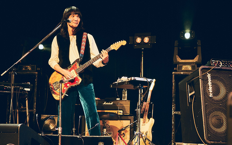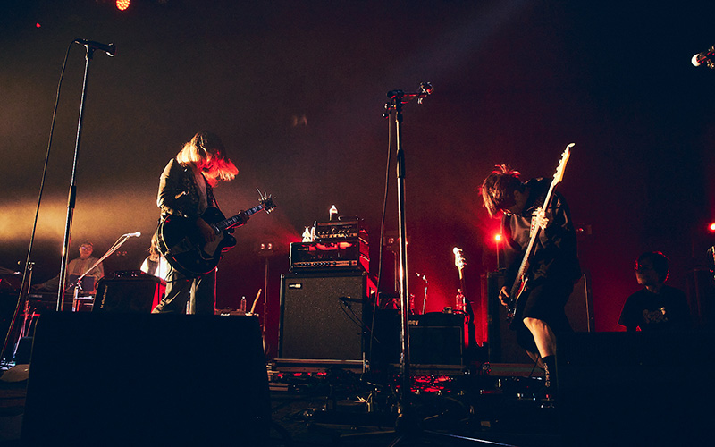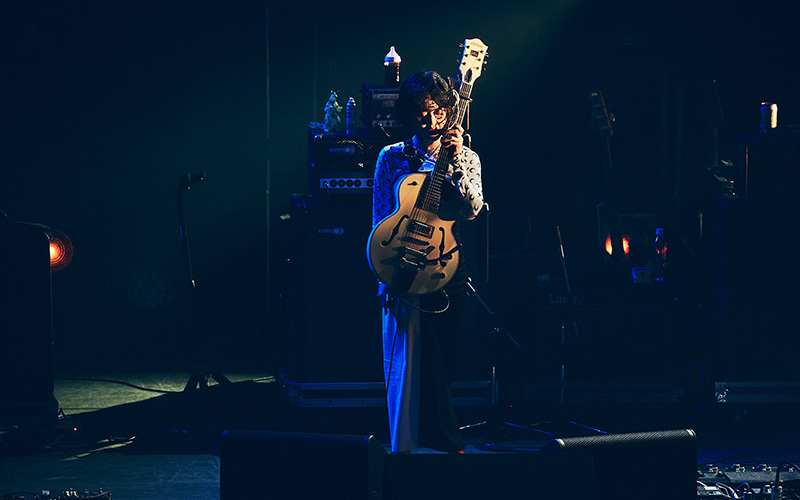 そしてこの夜のトリを飾るゲストとして現れたのは、スピッツの田村明浩。「俺はロックバンドのベーシストなので、一人じゃ何もできません(笑)。なので今日は、俺がいちばんやりたかった相手を呼びます」と紹介し、a flood of circleの佐々木亮介を呼び込む。披露されたのは、スピッツの「俺の赤い星」と「裸のままで」。佐々木のがなり声が草野マサムネとは異なる角度から楽曲の核をえぐり出し、スピッツの内に秘められたロックの衝動と切実さを露わにする。