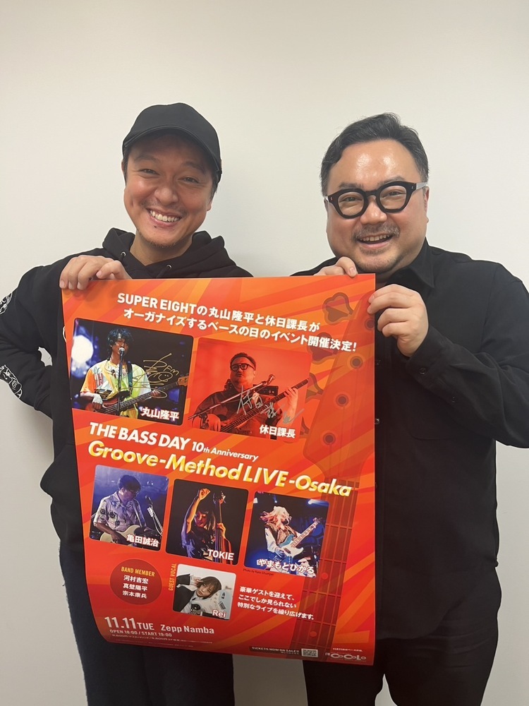 「THE BASS DAY 10th Anniversary Groove-Method LIVE」 貴重なライブ音源とバックステージでの出演者コメントをオンエア!丸山隆平&休日課長のツインDJでお届けします。お楽しみに!